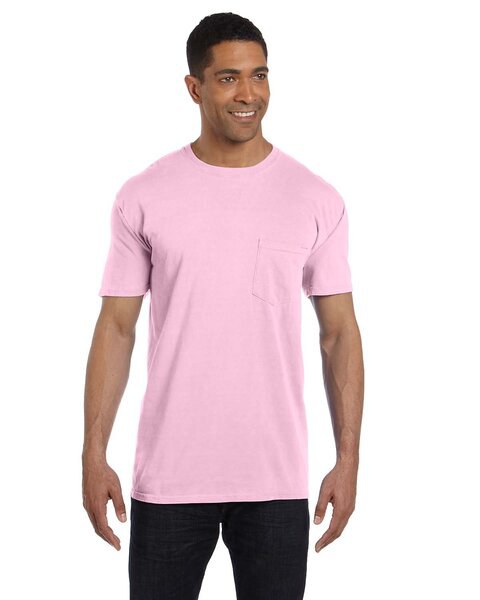 Comfort Colors 6030 es una remera manga corta Garment Dyed que incluye un bolsillo y está hecha con un 100% de algodón ringspun. Tiene mangas empotradas, costura de hombro a hombro y costura con aguja doble en el cuello, mangas y dobladillo.