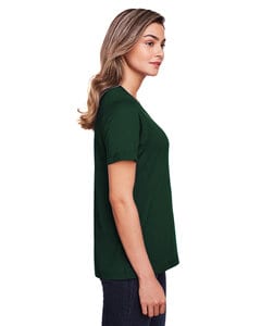 4.5 oz/yd2 / 160 gsm, 100% polyester jersey; ChromaSoft™ technology combines the colorfastness of cationic dyes with; soft cotton-feel performance; Moisture-wicking and antimicrobial performance; Tear away main label; Fashion forward scoop feminine neckline; Active fit; Easy care
