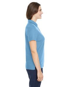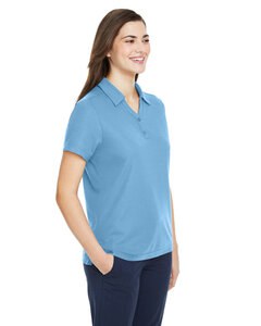 6 oz./yd2 / 210 gsm, 100% polyester pique; ChromaSoft™ technology combines the colorfastness of cationic dyes with soft cotton-feel performance; Moisture-wicking and antimicrobial performance; Feminine two-button Y-neck with self fabric collar and integrated collar stays; Dyed-to-match buttons; Side vents; Tear away label