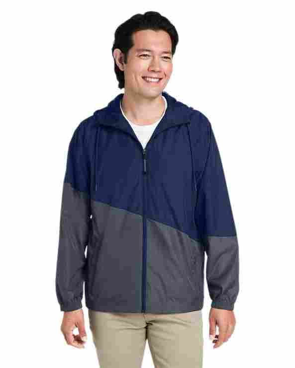 Body: 2 oz/yd² / 78 gsm, 100% polyester pongee ; Lining: 100% polyester mesh ; Water-resistant surface; Retro-inspired colorblock detail; Reflective piping details; Lower zippered pockets