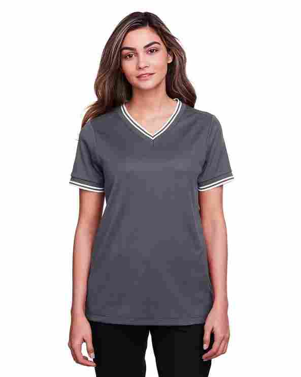Devon & Jones DG20CW - Grafito/Blanco - Ladies CrownLux Performance™ Plaited Tipped V-Neck Polo