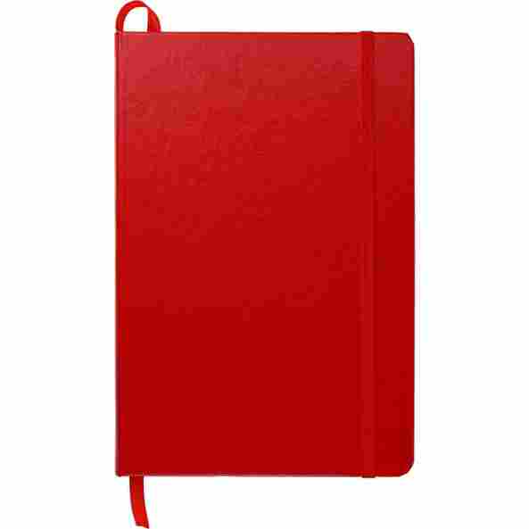 El FSC Mix Ambassador Hardcover Bound Journal de 5,5" x 8,5" es un diario encuadernado de tapa dura con 80 hojas de papel rayado de color crema. El diario incorpora cierre elástico, marcador de páginas de cinta y bolsillo expandible en acordeón.