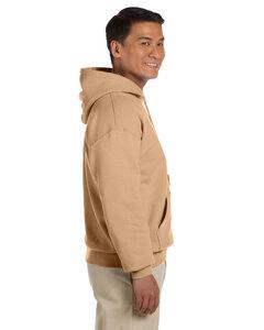 Gildan 18500 es un buzo con capucha deportivo fabricado con 50/50 algodón y poliéster. Éste buzo tiene una capucha que se ajusta con dos cordones del mismo color que el buzo (modelo sólo disponible para adultos), contiene un frisado bajo y puños de 1x1 deportivos con una costura con aguja doble y pretina con spandex. Tiene un bolsillo delantero y costuras de doble aguja. Etiqueta de raso.