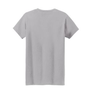 Gildan 5000L es una remera para mujeres manga corta hecha con 100% algodón. Tiene media pulgada de cuello redondo de canapé, manga de casquillo y costuras laterales. También tiene una costura con aguja doble en el dobladillo y una costura simple en el cuello y en los hombros.