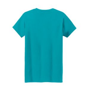 Gildan 5000L es una remera para mujeres manga corta hecha con 100% algodón. Tiene media pulgada de cuello redondo de canapé, manga de casquillo y costuras laterales. También tiene una costura con aguja doble en el dobladillo y una costura simple en el cuello y en los hombros.