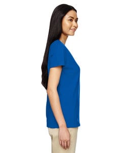 Gildan 5V00L es una remera de algodón grueso con cuello en V, fabricada con un 100% en algodón, con una etiqueta facíl de remover. Es un artículo que no se encoje, que marca bien la figura y con costuras laterales. Costura en los hombros y en el cuello. Cuenta con una costura con aguja doble en las mangas cortas y en el dobladillo. El cuello es 1/2" en forma de "V".