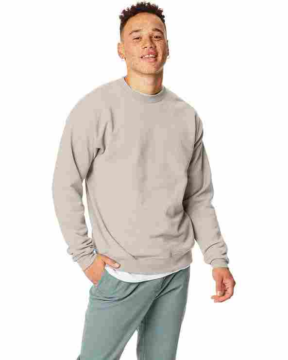 7.8 oz.; 50% cotton (up to 7.7% reclaimed), 50% polyester (up to 7.7% recycled); Recycled polyester from plastic water bottles; Ribbed waistband and cuffs; Double-needle coverseamed neck and armholes; Patented, low-pill, high-stitch density PrintPro® XP fabric; Tag-free neck label transitioning to tear-away label. INVENTORY MAY BE MIXED; A list status from CDP (Carbon Disclosure Project); Energy Star Partner of the Year (12 consecutive years); Every piece of Hanes apparel purchased from our company qualifies for Hanes4Education