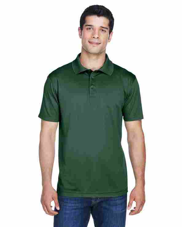 100% polyester; Anti-microbial, anti-static, anti-odor and UPF 50 protection; Quick drying and breathable; Proven to absorb, wick and evaporate more moisture than cotton; Sideseamed; Three-button placket with flat-knit collar; Double-needle topstitch on bottom hem and side vents; Clean-finished inside neck with self-fabric neck tape; Set-in sleeves with open hem;
