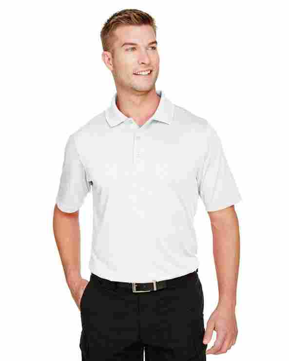 6.6 oz./yd2 / 225 gsm, 100% polyester ; Snag protection plus; Moisture-wicking; Antimicrobial performance; UV protection; Matching flat knit collar; Side vents; 3-button placket with dyed-to-match buttons; Industrial Laundry Tested to 75 washes