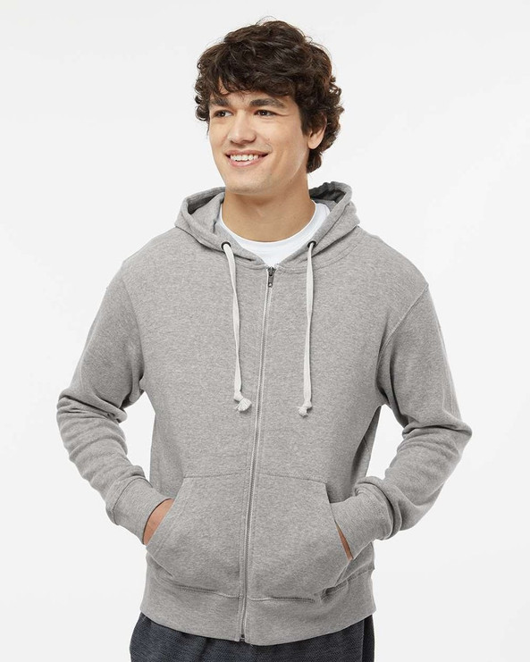 J. America 8872 - Gris Triblend - Sudadera con capucha y cremallera completa Triblend para hombre