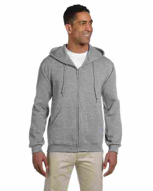 9.5 oz., 50% cotton, 50% polyester; Oxford is 49% cotton; 51% polyester; Made with sustainably sourced USA grown cotton; High-stitch density for a smoother printing canvas; virtually pill-free; Double-ply hood with grommets, matching drawcord, aluminum zipper; Double-needle coverseaming on neck, armholes and waistband; 1x1 ribbed cuffs and waistband with spandex; split pouch pockets; Concealed seam on cuffs; seamless body with set-in sleeves; Jerzees styles are manufactured using sustainable protocols which are measured and reported annually by Fruit of the Loom, Inc.; Jerzees styles are manufactured with the commitment to enriching lives for people and communities which is measured and reported annually by Fruit of the Loom, Inc.
