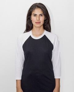 Los Angeles Apparel FF53 - Heather Black/ Black - Camiseta de béisbol de manga raglán y tres cuartos, fabricada en EE.UU