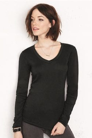 Bella+Canvas 8750 - Ladies Sheer Mini Rib Long Sleeve V-Neck T-Shirt