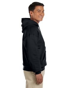 Gildan 18500 es un buzo con capucha deportivo fabricado con 50/50 algodón y poliéster. Éste buzo tiene una capucha que se ajusta con dos cordones del mismo color que el buzo (modelo sólo disponible para adultos), contiene un frisado bajo y puños de 1x1 deportivos con una costura con aguja doble y pretina con spandex. Tiene un bolsillo delantero y costuras de doble aguja. Etiqueta de raso.