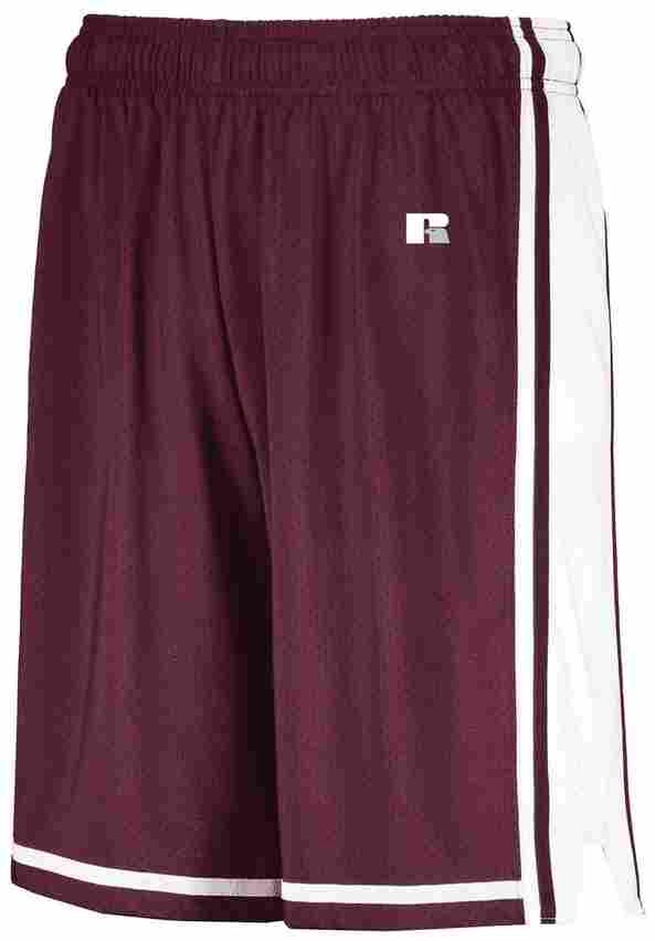 The Youth Legacy Basketball Shorts by Russell Athletic® combine a vintage look with modern fabric technology. They feature a retro color block design and 100% polyester wicking mesh with Dri-Power® moisture wicking technology. Respect the past and own the future in these classic shorts.