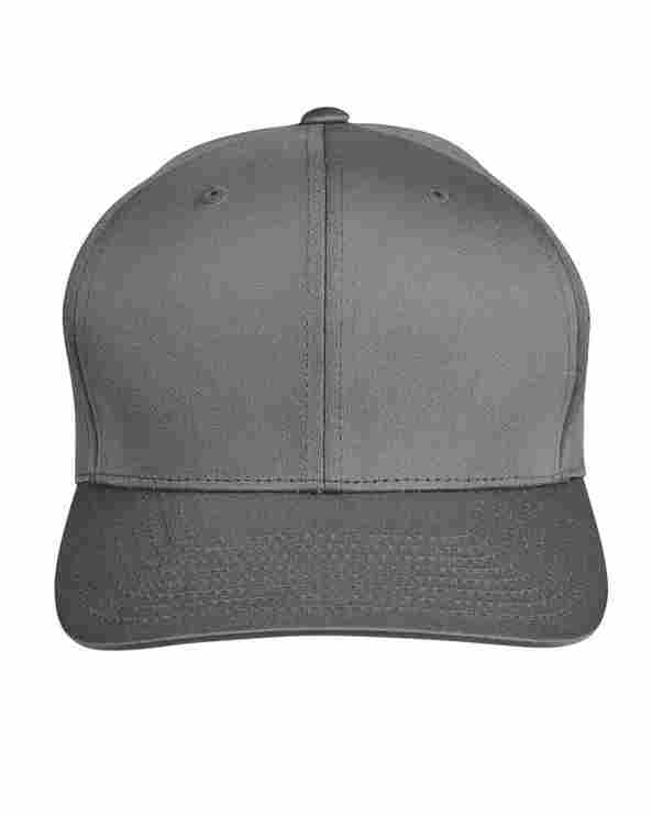 4 oz/yd2 / 130 gsm, 100% polyester interlock; Moisture-wicking; UV protection performance; 6-panel, structured, mid-profile; Heavy buckram in front panels; Sewn eyelets; Adjustable snap-back closure